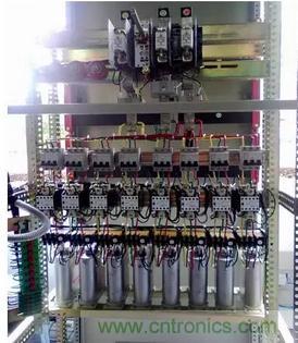 合上刀熔開關(guān)和斷路器,無功功率補(bǔ)償控制器根據(jù)進(jìn)線柜電壓和電流的相位差輸出控制信號,控制交流接觸器閉合和斷開,從而控制電容器投入和退出。
