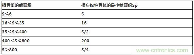 保護(hù)導(dǎo)體(PE)的截面積不應(yīng)小于下表給出值