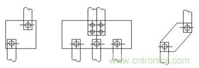 (8)母線寬度大和長度短都不能曲立彎,進(jìn)出線母排寬度差比較大時(shí),可在不影響搭接面積的前提下,允許有過度母排,偏向母線的一側(cè)或改變母線的連接。見下圖