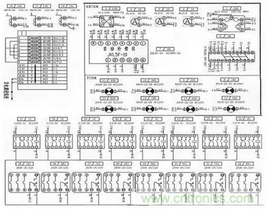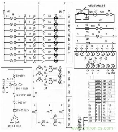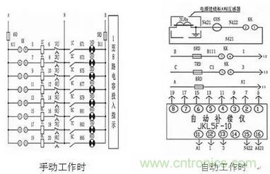手動(dòng)工作時(shí),轉(zhuǎn)換開關(guān)KK從kk21-22開始每轉(zhuǎn)過一個(gè)位置多接通一個(gè)LED燈,表示1—8個(gè)電容器依次進(jìn)入使用狀態(tài);自動(dòng)接通時(shí),轉(zhuǎn)換開關(guān)KK如在kk1-2位置停下,那么停下的位置,其余均接通。(如下圖)