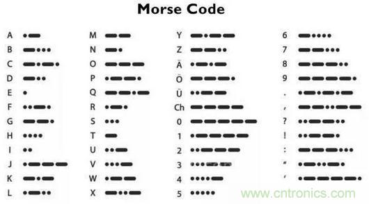 經(jīng)過亨利院長的點撥,莫爾斯逐步掌握了電磁學的知識,莫爾斯還向其他人虛心求教,終于制作出了電報機,還發(fā)明了著名的莫爾斯電碼,用點、橫和時間間隔代表26個英文字母和10個阿拉伯數(shù)字。一點就是繼電器的線圈開關(guān)閉合較短時間,上面的燈泡亮的時間也很短,一橫就是繼電器的線圈開關(guān)閉合較長的時間,上面的燈泡亮較長的時間,短和長是1:3的比例。然后在各個字母和單詞之間有固定的時間停頓,也就是繼電器不帶電,這樣就可以通過燈泡的亮和滅,即回路的通和斷,加上通和斷的時間,來表示一段報文了。