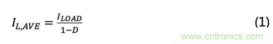 電感值的選擇很重要,因為它決定了電感上的電流紋波,從而決定了輸出端的電壓紋波。根據(jù)圖1,平均電感電流IL,AVE由下式給出。