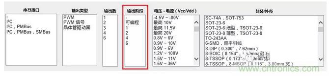 Digi-Key官網(wǎng)上,升壓控制器篩選列表參數(shù)中提供了不少參數(shù)選項以協(xié)助工程師選料,其中“輸出階段”便是其中之一。“輸出階段”即代表芯片可以有多少相輸出。