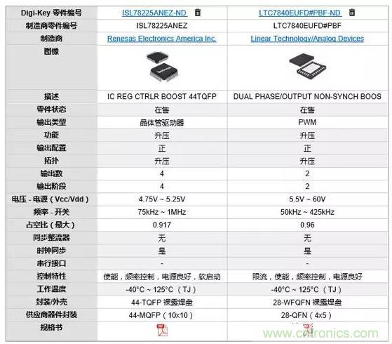 圖5:ISL78225ANEZ與LTC7840EUFD#PBF芯片的參數(shù)比較