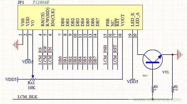 7、LCM12864液晶模塊(ST7920)本電路是常見的12864電路,價格便宜,帶中文字庫。可以通過PSB端口的電平來設(shè)置其工作在串口模式還是并行模式,帶背光控制功能。