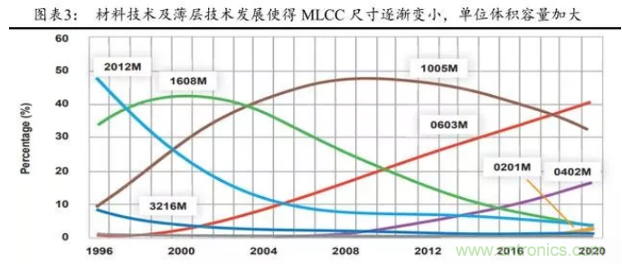 MLCC小型化、大容量、高壓化及高頻化是大趨勢(shì)。MLCC作為新興電容器,誕生于 1960s 的美國(guó),但當(dāng)其流傳到日本,才得到大規(guī)模的發(fā)展。