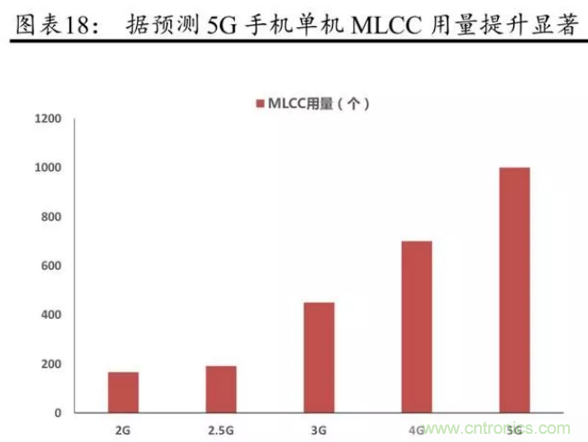 另根據(jù) Kemet 數(shù)據(jù),iPhoneX 單部手機(jī)對(duì) MLCC需求量超過 1000 只,而 iPhone 6S 對(duì) MLCC需求量為 500 只左右。隨著 OPPO、VIVO、小米、華為等逐步專注于生產(chǎn)中高端機(jī)型,有望推動(dòng)上游 MLCC 需求獲得持續(xù)較快的增長(zhǎng)。