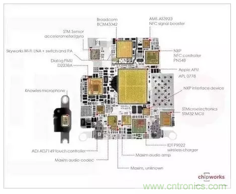 采用 SiP 技術(shù)的產(chǎn)品,最著名的非 Apple Watch 莫屬。因?yàn)?Watch 的內(nèi)部空間太小,它無法采用傳統(tǒng)的技術(shù),SoC 的設(shè)計(jì)成本又太高,SiP 成了首要之選。藉由 SiP 技術(shù),不單可縮小體積,還可拉近各個 IC 間的距離,成為可行的折衷方案。下圖便是 Apple Watch 芯片的結(jié)構(gòu)圖,可以看到相當(dāng)多的 IC 包含在其中。