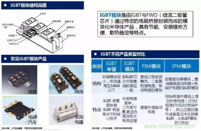 IGBT模塊是由IGBT與FWD(續(xù)流二極管芯片)通過特定的電路橋接封裝而成的模塊化半導體產(chǎn)品,具有節(jié)能、安裝維修方便、散熱穩(wěn)定等特點。