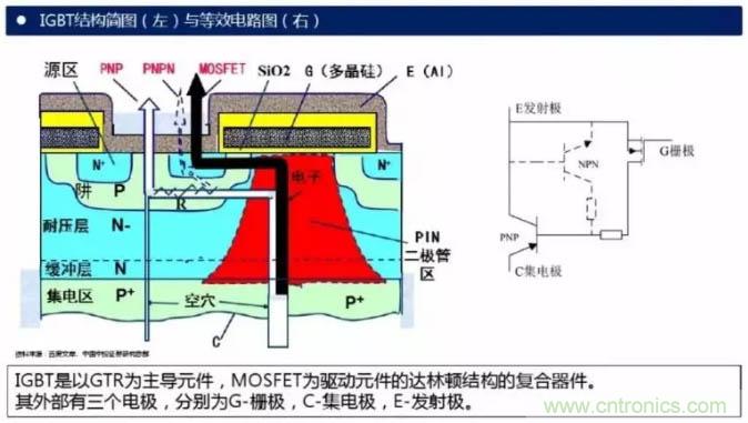 IGBT是以GTR為主導元件,MOSFET為驅動元件的達林頓結構的復合器件。其外部有三個電極,分別為G-柵極,C-集電極,E-發(fā)射極。