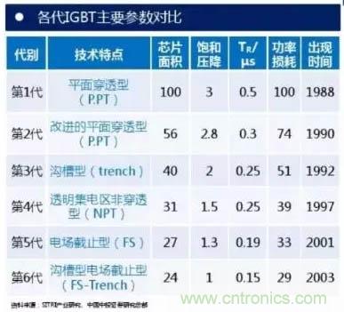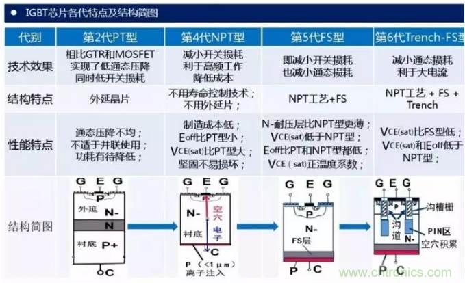 1985年前后美國GE成功試制工業(yè)樣品(可惜后來放棄)。自此以后, IGBT主要經(jīng)歷了6代技術及工藝改進。