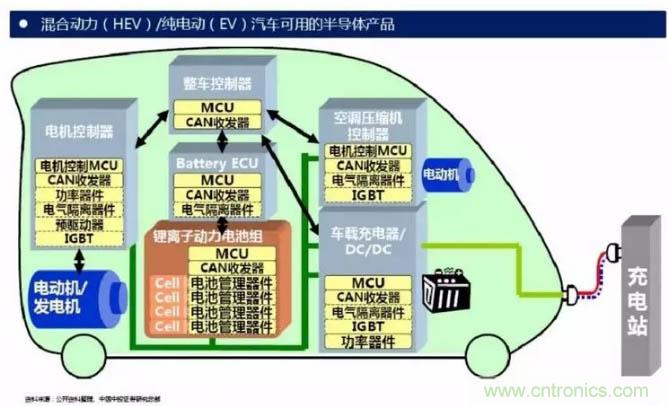 IGBT模塊在電動汽車中發(fā)揮著至關重要的作用,是電動汽車及充電樁等設備的核心技術部件。IGBT模塊占電動汽車成本將近10%,占充電樁成本約20%。IGBT主要應用于電動汽車領域中以下幾個方面: