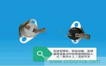 溫度開關(guān)的額定電流值(雙金屬片間流過電流值)一般有1A、2A、5A三個等級。溫度開關(guān)常見的封裝形式有塑封片狀、金屬殼長條形等,其在電炒鍋、電餅鐺、電烤箱等電熱炊具中被廣泛使用;而在軟啟動器、變頻器、逆變式焊機(jī)等工控設(shè)備中,溫度開關(guān)多被固定在大功率元件(晶閘管、IGBT)背后的鋁制散熱片上;此外溫度開關(guān)還會被植入電動機(jī)、大容量變壓器繞組內(nèi),充當(dāng)超溫預(yù)警、溫度保護(hù)元件。
