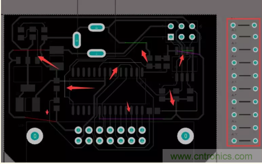 如下圖,這就是一個通過跳線設(shè)計(jì)器,來實(shí)現(xiàn)的路由在一邊的板。