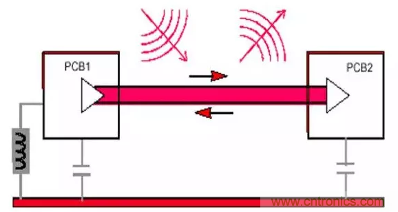 串模干擾(差模干擾)與共模干擾(接地干擾)。以主板上的兩條PCB走線(連接主板各元件的導線)為例,所謂串模干擾,指的是兩條走線之間的干擾;而共模干擾則是兩條走線和PCB地線之間的電位差引起的干擾。
