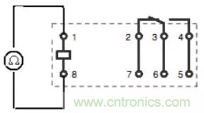 a、內(nèi)阻測試:測試繼電器1、8腳間的阻值大小,如圖示