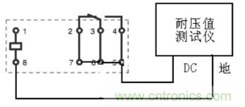 介質(zhì)耐壓(俗稱打高壓)是考核繼電器的殼體、繞阻、觸點及觸點間在規(guī)定的時間內(nèi)承受規(guī)定交流電壓的能力。而絕緣電阻是考核繼電器的殼體、繞阻、觸點及觸點間在效加規(guī)定直流電壓的條件下體現(xiàn)出來的絕緣電阻。國軍標規(guī)定的試驗電壓施加點見表4。