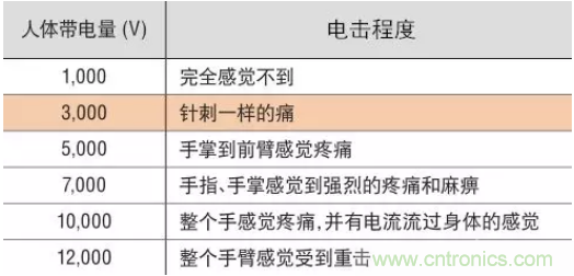 下面介紹了當(dāng)人體帶電時(shí)帶電量與所感受到的電擊之間的大致關(guān)系。