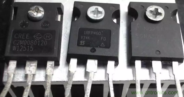 恰好手邊有如下功率MOS管,左邊為碳化硅MOS管,型號為C2M0080120,它的耐壓為1200V,導(dǎo)通電阻80m歐姆。