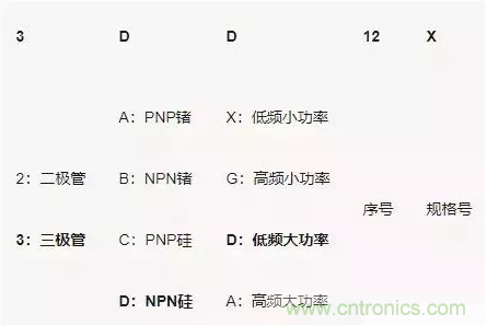 不同的國家/地區(qū)對三極管型號命名方式不同。還有很多廠家使用自己的命名方式。