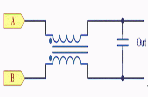 圖4中共模扼流圈的特殊繞制方法決定了它僅對共模電流有抑制作用,而對電路工作所需要的差模電流沒有影響。因此,共模扼流圈是解決共模干擾的理想器件。理想的共模扼流圈的低頻共模抑制作用較小,而隨著頻率的升高,抑制效果增加。這與平衡電路低頻共模抑制比高,隨著頻率升高平衡性變差,共模抑制比降低的特性正好相反,因此它們具有互補性。所以,在平衡電路中使用共模扼流圈后,電路可在較寬的頻率范圍內(nèi)保持較高的共模抑制比。