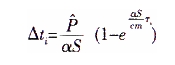以上分析考慮了主動部分的熱容量(cm)在脈沖功率的作用下吸收熱量使自身的溫度上升的情況,實際上,由于散熱(αS)作用,這個過程符合于一個指數規(guī)律,時間常數αS/cm表明了這個指數規(guī)律的特征。