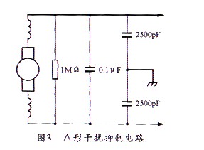 此外,還有一組典型的△形干擾抑制器電路,可同時(shí)抑制對稱和不對稱干擾。其具體電路如圖3所示。