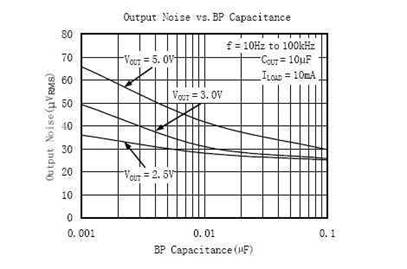 為降低基準(zhǔn)噪聲,用于連接基準(zhǔn)旁路電容。增大旁路電容能夠使基準(zhǔn)噪聲成為產(chǎn)生LDO輸出噪聲的次要因素,有利于減小輸出噪聲。建議使用陶瓷電容的典型值為470pF到0.01µF。也可使用此范圍以外的電容,但會(huì)對輸入電源上電時(shí)LDO輸出電壓上升的速度產(chǎn)生影響,旁路電容值越大,輸出電壓上升速率越慢。在使用時(shí)這點(diǎn)要注意。