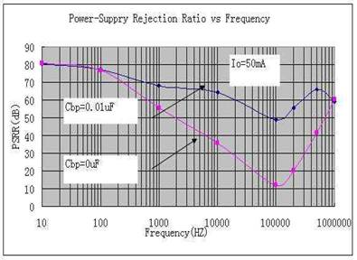 如圖為輸出電容對PSRR的影響。大電容器一般在一定頻率范圍內(nèi)會(huì)提高電源抑制比(PSRR)