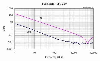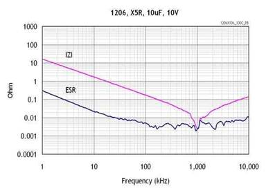 LDO需要增加外部輸入和輸出電容器。利用較低ESR的大電容器一般可以全面提高電源抑制比(PSRR)、噪聲以及瞬態(tài)性能。陶瓷電容器通常是首選,因?yàn)樗鼈儍r(jià)格低而且故障模式是斷路,相比之下鉭電容器比較昂貴且其故障模式是短路。輸出電容器的等效串聯(lián)電阻(ESR)會(huì)影響其穩(wěn)定性,陶瓷電容器具有較低的ESR,大概為10mΩ量級(jí)采用陶瓷電容時(shí),建議使用X5R和X7R電介質(zhì)材料,這是因?yàn)樗鼈兙哂休^好的溫度穩(wěn)定性。圖為X5R的ESR和頻率曲線。
