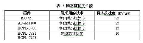 在電容耦合解決方案中,法拉第屏蔽并非是一種可行的解決方案。除了瞬態(tài)以外,法拉第屏蔽還會(huì)阻塞用于數(shù)據(jù)傳輸?shù)碾妶?chǎng)。為了提供瞬態(tài)抗擾度,ISO72x系列電容隔離器只傳輸fo信號(hào)(信號(hào)中僅代表最高頻率能量的數(shù)據(jù)信號(hào))。這樣就允許有一個(gè)噪聲頻率高阻抗的小耦合電容。其他噪聲則來(lái)自在隔離層上傳輸數(shù)據(jù)的差分技術(shù)。圖9顯示了穿過(guò)電容隔離層的四個(gè)信號(hào);兩個(gè)包含低信號(hào)速率信息,另外兩個(gè)包含高信號(hào)速率信息。通過(guò)使用差分技術(shù),可以在真正的和補(bǔ)償信號(hào)中看到任何穿過(guò)隔離層的剩余共模瞬態(tài),而且差分接收機(jī)對(duì)其進(jìn)行了抑制。如表2所示,ISO72x系列的瞬態(tài)抗擾度和所有具可比性的高達(dá)25kV/us的器件一樣高。[page]