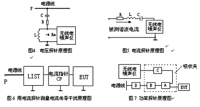 國(guó)際曾有人建議對(duì)小型電子設(shè)備采用類(lèi)似于CLSPRl4一l(對(duì)應(yīng)的我國(guó)國(guó)家標(biāo)準(zhǔn)是GB4343—l《家用和類(lèi)似用途電動(dòng)、電熱器具、電動(dòng)工具以及類(lèi)似電路的無(wú)線(xiàn)電干擾特性的測(cè)量方法和允許值》)中所提供的吸收鉗(或稱(chēng)為功率探針、鐵氧體鉗)方法來(lái)測(cè)試EUT對(duì)外的輻射功率。利用吸收鉗可以測(cè)量5MHz—300MHz的傳導(dǎo)干擾功率。采用此法的前提是EUT尺寸較小,其輻射到空間的能量主要是通過(guò)EUT的電源線(xiàn)等逸出的。因此,對(duì)這部分能量的測(cè)量可以用一個(gè)環(huán)繞電源線(xiàn)的吸收裝置來(lái)實(shí)現(xiàn)。這個(gè)吸收裝置便被稱(chēng)為吸收鉗。這個(gè)方法的優(yōu)點(diǎn)是簡(jiǎn)便易行,對(duì)環(huán)境要求不高,在屏蔽室里便可進(jìn)行,而且測(cè)試結(jié)果有很好的重復(fù)性和可比性。電壓、電流傳導(dǎo)干擾可分別由電壓探針和電流探針測(cè)出。圖4、圖5分別為電壓探針和電流探針原理圖。圖6為電流探針測(cè)量電流傳導(dǎo)干擾原理圖。功率探針原理見(jiàn)圖7。
