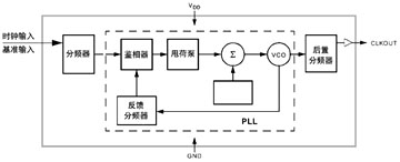 W181采用了頻率鎖相環(huán)(PLL)技術(shù)來調(diào)制輸入時鐘,其結(jié)果是得到一個輸出時鐘,它的頻率可緩慢地掃過一個接近于輸入信號的窄帶。基本電路結(jié)構(gòu)如圖2所示。
