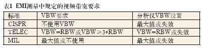 在大多數(shù)EMI測(cè)量中,視頻濾波器指定為關(guān)閉,或視頻濾波器指定為至少比測(cè)量的指定RBW高出三倍(參見表1)。