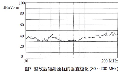 由測試結果可以看出,通過電磁兼容設計在傳導騷擾抑制方面取得了良好效果,在高頻段輻射騷擾的設計也達到了預期效果,下面還需對在30~200MHz頻段范圍內的輻射騷擾進行改進設計。
