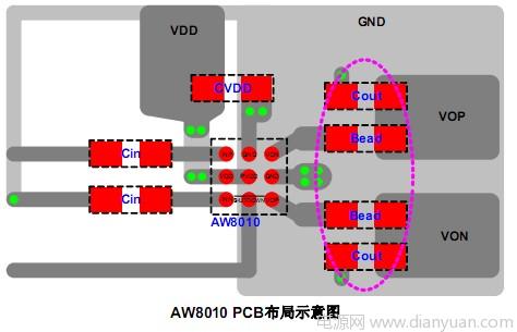 2:磁珠、電容緊靠芯片輸出管腳放置,盡量減短輸出管腳到磁珠的布線長度。
