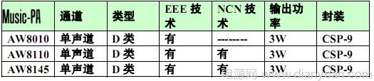 高效率、低功耗使得D類放大器的應(yīng)用越來越廣泛,D類放大器EMI也越來越受到關(guān)注。采用艾為帶有EEE技術(shù)的AW8010、AW8110、AW8145,極大地降低了EMI的輻射,簡化了設(shè)計(jì)。其中音樂功放AW8110、AW8145同時(shí)還采用了獨(dú)特的、擁有專利保護(hù)的無破音(NCN:Non-Crack-Noise)技術(shù),提高音質(zhì)的同時(shí)有效地保護(hù)揚(yáng)聲器,是音樂手機(jī)等便攜式設(shè)備的理想選擇。