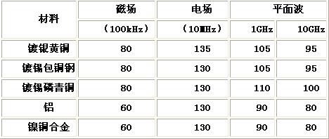 表12 鈹銅簧片的屏蔽效能dB[page]