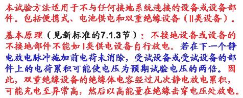 關(guān)于不接地設(shè)備的試驗配置,新版標準與舊版標準的配置是相同的。關(guān)鍵是在單次放電時(無論是空氣的,還是接觸的),試品上的電荷應(yīng)當(dāng)在每次施加靜電放電脈沖之前先行釋放(釋放掉在需要施加靜電放電的金屬點或金屬部位上的電荷)。