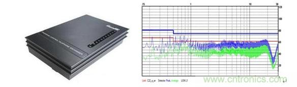 雖然電源自身電磁干擾方面投入了很大的設(shè)計成本,也符合承諾的各項指標要求,但是電源在市場應(yīng)用方面還是難免出現(xiàn)電磁干擾超標的問題;此時,很多的設(shè)計工程師都會認為問題的根源在于電源,這方面的認識其實是有誤區(qū)的,因為電磁干擾傳導騷擾測試項目,主要是針對電源端口的,那么電源端口就成了他的傳輸路逕,所有的電磁干擾都會經(jīng)過電源端口到達被測設(shè)備,但是測試設(shè)備測試到的電磁干擾除了來自電源本身外,主要的部分還包括整機中的其他部分產(chǎn)生的電磁干擾,以及設(shè)備內(nèi)部寄生參數(shù)的諧振產(chǎn)生的電磁干擾,這一類電磁干擾會通過電源端口耦合到測試設(shè)備,電源內(nèi)部的濾波器是無法進行實現(xiàn)對這部分電磁干擾進行濾波,電源應(yīng)用環(huán)境千差萬別,所有電源設(shè)計濾波器部分都是以解決自身的干擾為首要考慮條件的同時,濾波器衰減特性及頻譜特性盡量會預(yù)留最大的余量,但不可能兼容所有應(yīng)用場合;那么這就要求我們的整機設(shè)計人員在設(shè)計電源前端時候,一定要按照電源廠家推薦的應(yīng)用電路進行設(shè)計,例如:LH15產(chǎn)品應(yīng)用過程中出現(xiàn)EMI超標問題(見下圖)。