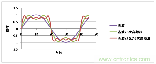 下圖所示的是正弦波的高頻波(擁有基本波整數(shù)倍頻率的波)重疊而成的例子,可以看到當高頻波越多圖形就越接近矩形波。矩形波相當于這些高頻波持續(xù)重疊在一起的波紋。