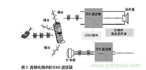 在音頻電路中如有電磁干擾(EMI),會出現(xiàn)嘶嘶、噼啪、嗡嗡等聲音,聲音質(zhì)量很差。手機用戶無法忍受這樣的干擾。因此,必須設法過濾音頻電路的電磁干擾。
