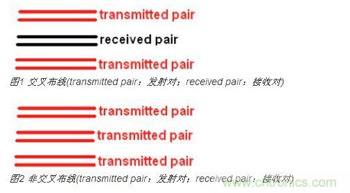 為了盡可能降低緊密耦合線對之間的串擾,微帶線采用收發(fā)交叉布線而帶狀線應(yīng)用收發(fā)非交叉布線是一個更好的選擇。