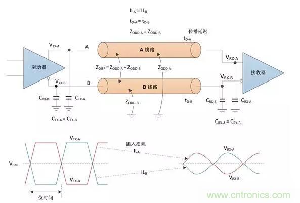 A線路和B線路都需要保持相當(dāng)恒定和相等的特性阻抗,通常稱為奇模阻抗,此時兩條線路均差分激勵。
