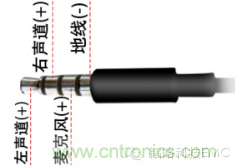 2、耳機(jī)采用的是蘋果標(biāo)準(zhǔn)接口,蘋果耳機(jī)接口圖如下,從圖中可以看出HP_MIC在耳機(jī)母座最外面一個(gè)腳,金屬?gòu)椘寐懵对谕饷?,極易受靜電影響。