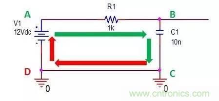 往往在設(shè)計(jì)階段A->B->C是都會(huì)關(guān)注的。如果EMC出現(xiàn)問題,除了要在原理圖上查找電路參數(shù)的問題,還需要特別關(guān)注C->D,即回流路徑。