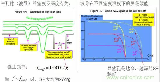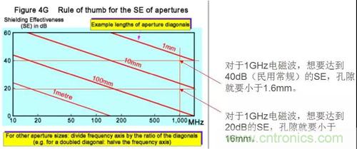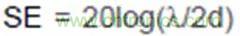 在一個完美的屏蔽殼體上開一個洞,相當于構成一個半波共振縫隙天線,屏蔽效能SE與孔的最大尺寸d、電磁波波長λ關系如下: