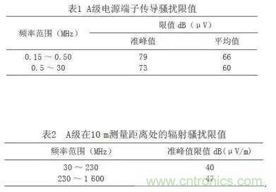 根據(jù)鐵路客運(yùn)專線標(biāo)準(zhǔn)規(guī)定,傳導(dǎo)騷擾限值和輻射騷擾限值如表1、2所示。