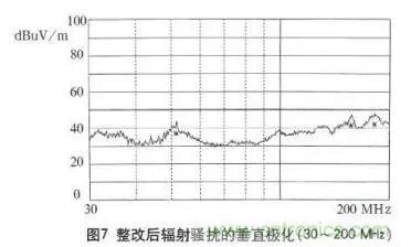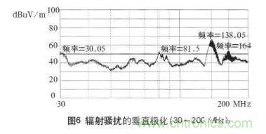 由測(cè)試結(jié)果可以看出,通過電磁兼容設(shè)計(jì)在傳導(dǎo)騷擾抑制方面取得了良好效果,在高頻段輻射騷擾的設(shè)計(jì)也達(dá)到了預(yù)期效果,下面還需對(duì)在30~200MHz頻段范圍內(nèi)的輻射騷擾進(jìn)行改進(jìn)設(shè)計(jì)。