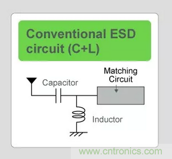 【導(dǎo)讀】L+C無論如何會出現(xiàn)ESD保護(hù)性能不足的可能。特別是用金屬外殼或金屬框架的天線,ESD保護(hù)性能的問題一直在增加。另外,為了提高ESD保護(hù)性能而降低并聯(lián)的電感值的話,會導(dǎo)致低頻段的插入損耗增加。這該怎么辦呢?